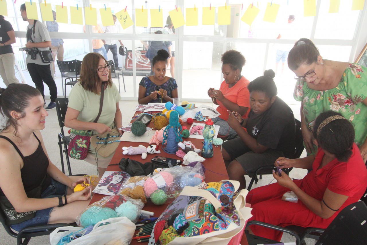 A tutora Nádia Senna junto as integrantes do grupo Caixa de pandora, ministraram uma oficina de crochê, o evento também contou com a participação do grupo Tatá-núcleo de dança teatro.