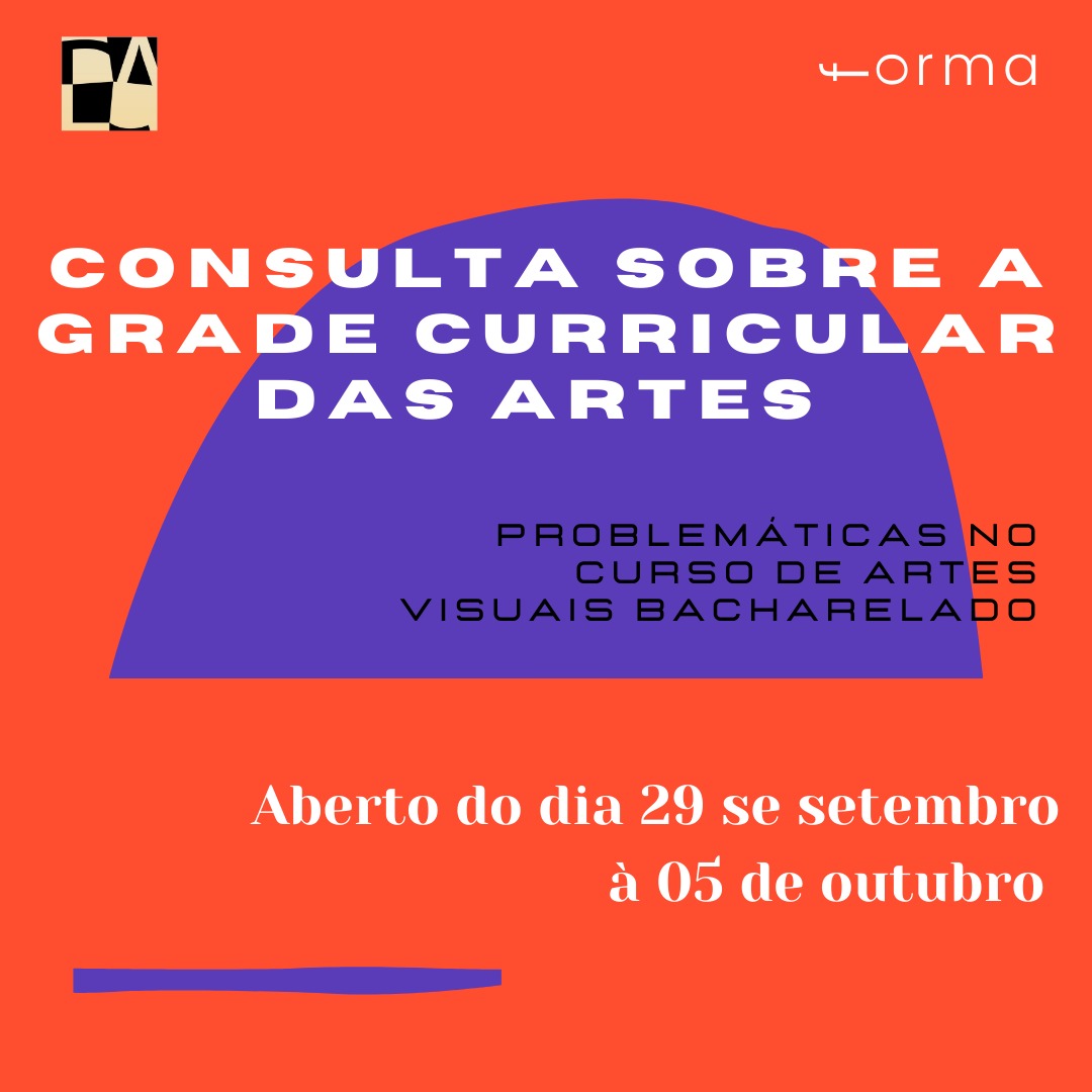 O Diretório Acadêmico de Artes Visuais e o projeto de ensino “FORMA: espaço de formação ampliada”, propõem o presente documento a fim de ouvir a opinião dos alunos a respeito da grade curricular do curso.