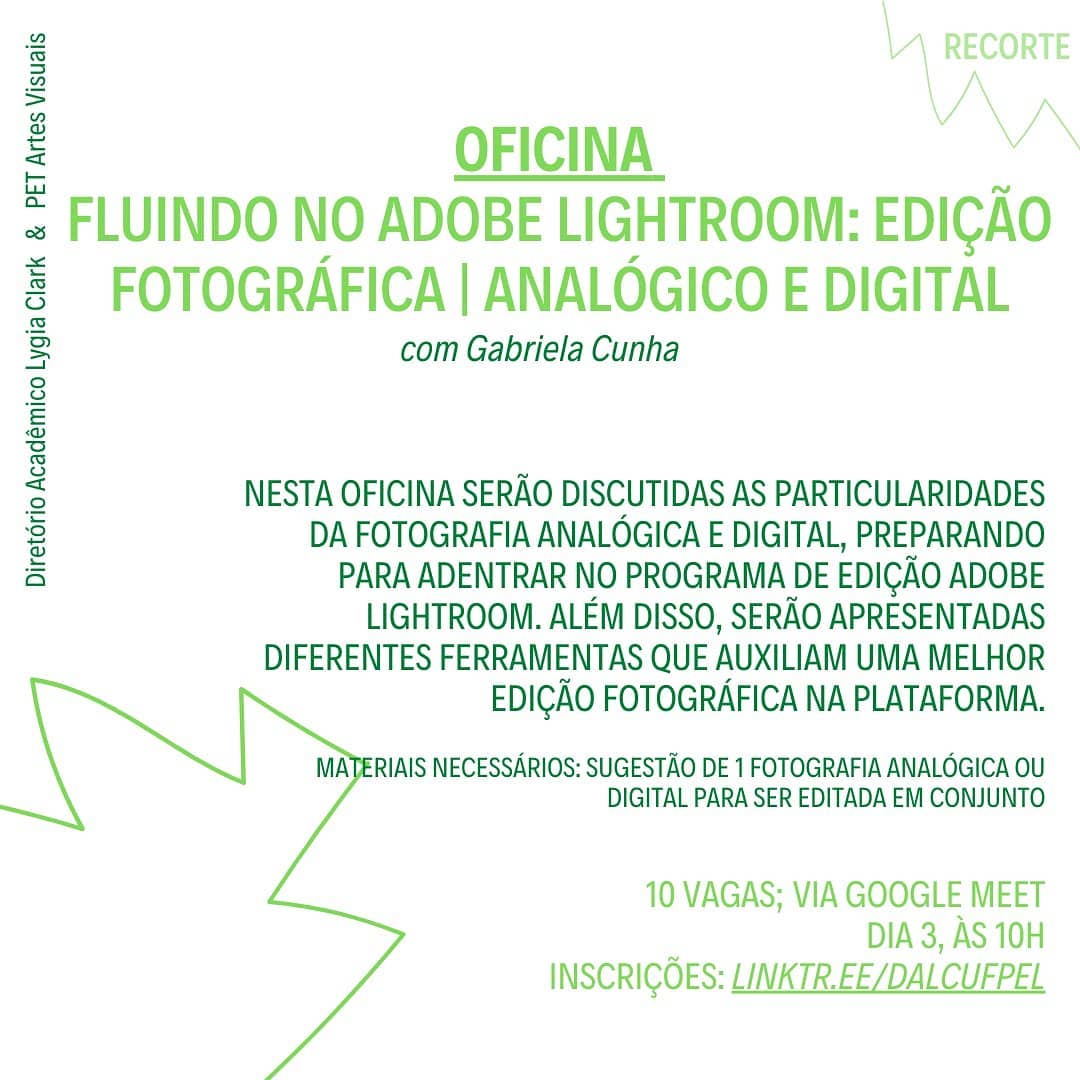 Informações sobre as oficinas e conversar pelo facebook e instagram do PET Artes e Também do DALC – Diretório Acadêmico Lygia Clark