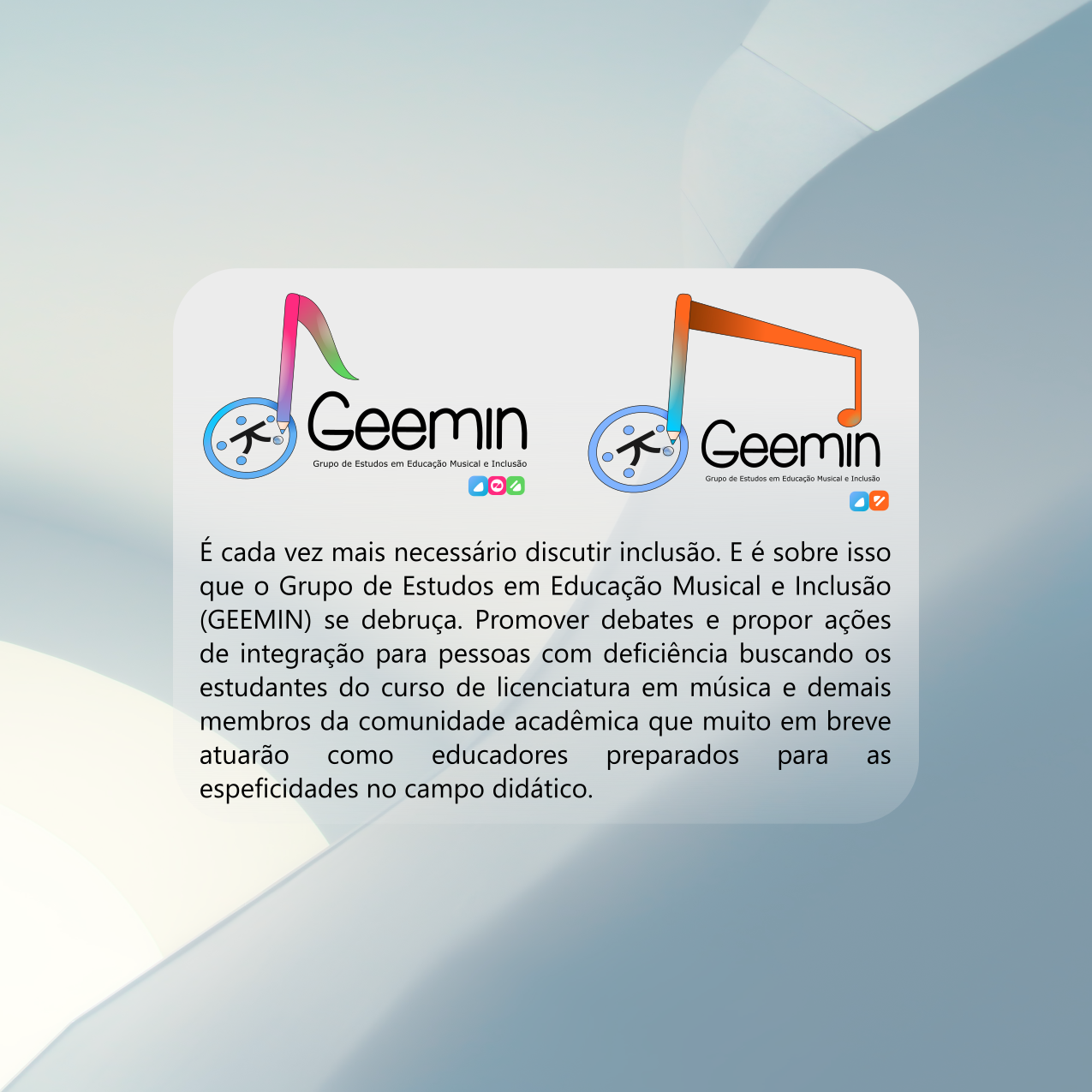 O projeto Geemin entrou em contato com o PET Artes propondo um parceria e o petiano Matheus Matos assumiu o compromisso de criar um logo para o projeto e também desenvolver uma identidade visual.