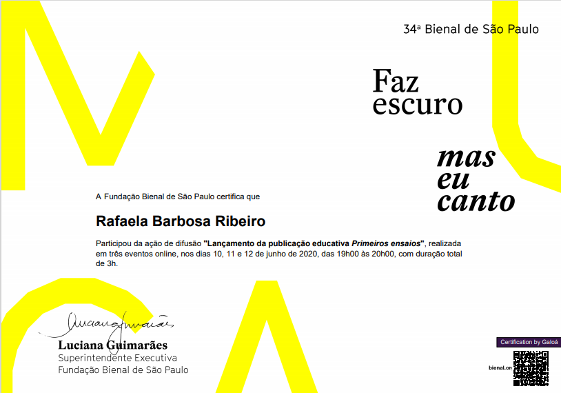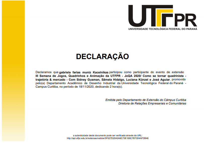 Durante 2020 os bolsistas participaram de vários cursos de formação e oficinas, as seguir os certificados de cursos, eventos e oficinas.