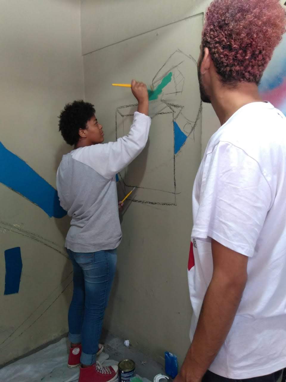 No ano de 2021 as ações extensionistas, que tem como objetivo criar a sensação de pertencimento para os alunos, foram realizadas pelos bolsistas André Gustavo e Rafa Ribeiro, promovendo um mural coletivo realizado em técnicas de grafite entre os alunos e os petianos oficineiros.