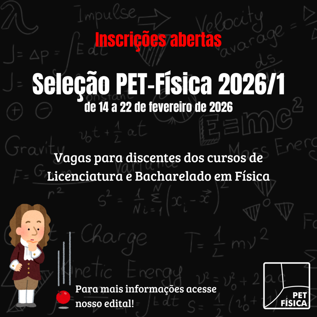 O Grupo PET-Física abre o processo seletivo para ingresso de novos petianos com o objetivo de preencher 08 (oito) vagas.