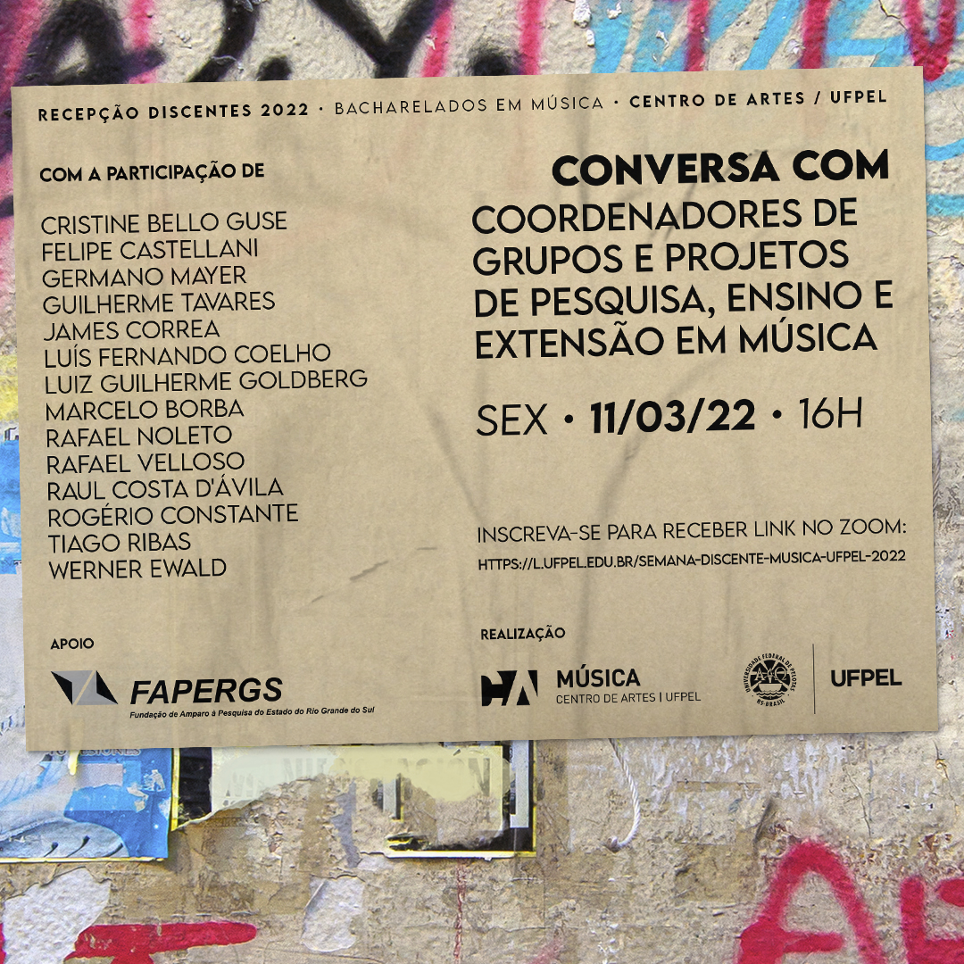 SEXTA 11/03 – 16h – Conversa com coordenadores de Grupos de pesquisa e projetos de pesquisa, ensino e extensão dos Bacharelados em Música.