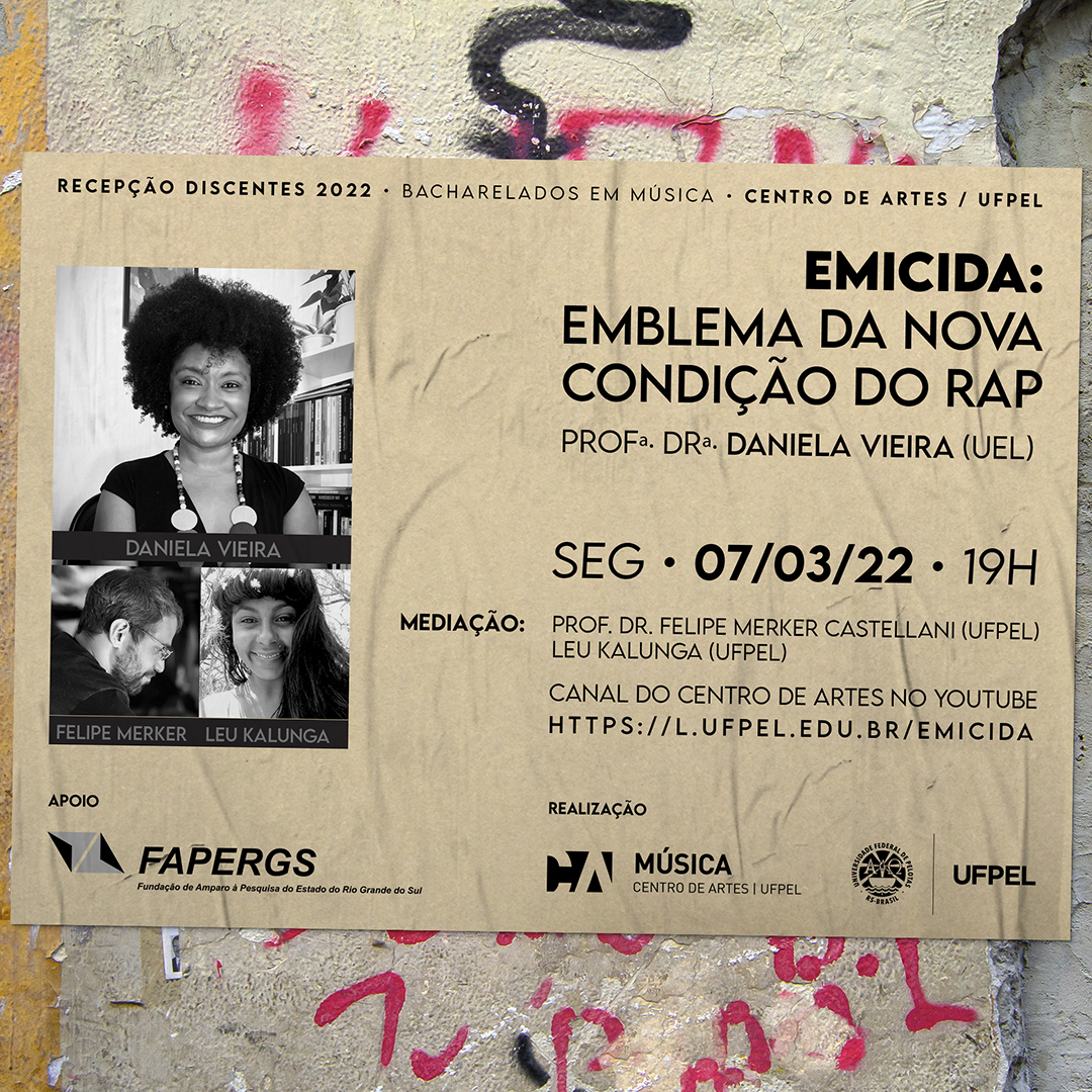 SEGUNDA 07/03 – 19h – Emicida: emblema da nova condição do rap – Palestra com a Prof.ª Dr.ª Daniela Vieira dos Santos (UEL)