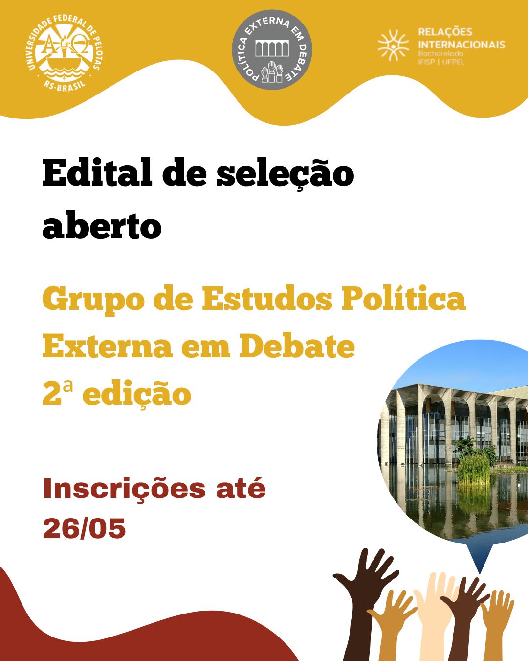 Estão abertas as inscrições para membro participante da 2ª edição do Grupo de Estudos Política Externa em Debate (GEPED). Esta edição discutirá a diversidade de atores nos processos de formulação e implementação da política externa.