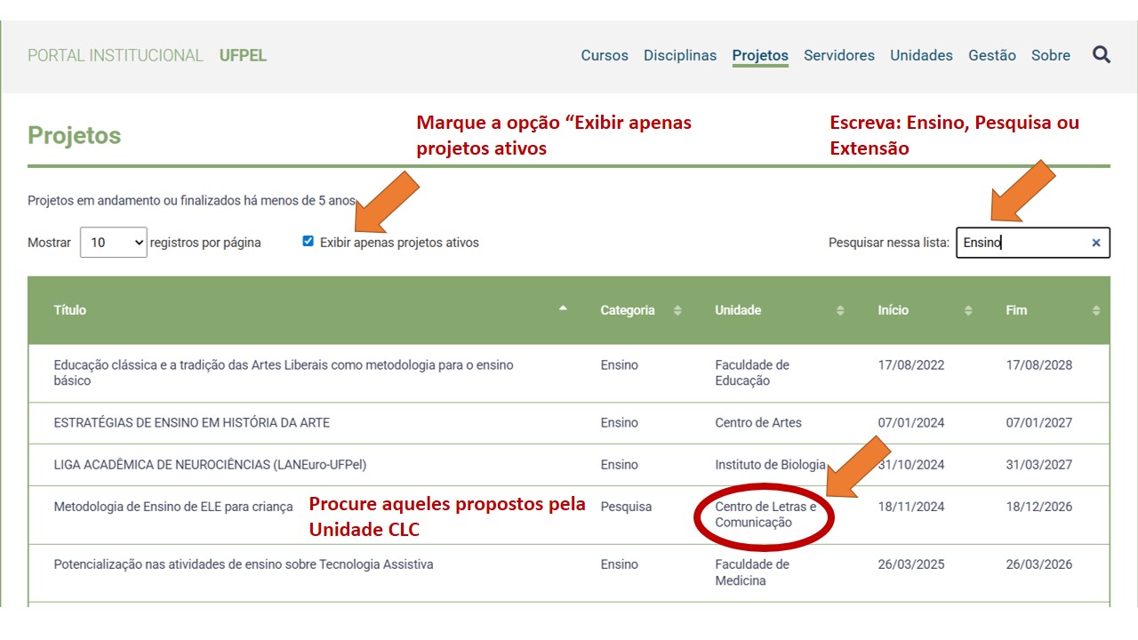 Na imagem, você encontra dicas de como encontrar esses Projetos.