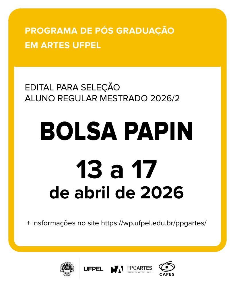 Início do semestre letivo 2026/1 PPGARTES cursos de Mestrado e Doutorado dia 8 de abril de 2026.