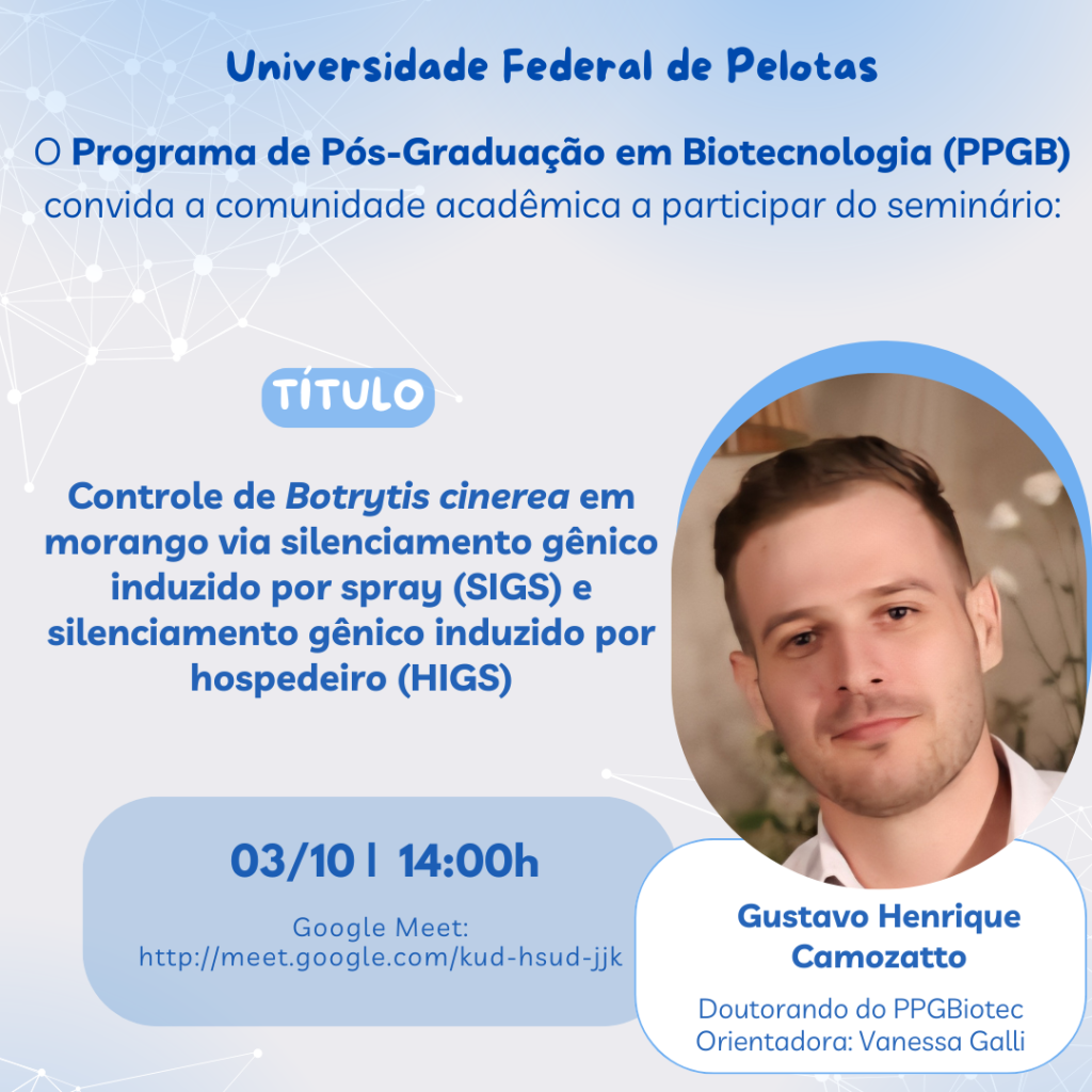 Local: Webconferência e Sala de aula do PPGBiotec, do prédio 19, no Campus Capão do Leão