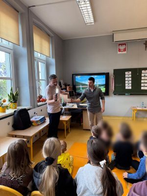 No dia 14 de novembro, o professor Willian, da Universidade Federal de Pelotas (UFPel), realizou uma visita a uma escola de ensino fundamental na região de Ruda Śląska, localizada na Silésia, Polônia. A atividade integrou as ações previstas em seu estágio de pós-doutorado e teve como foco aproximar estudantes e docentes de temas atuais da ciência, com destaque para energias renováveis e transição energética.