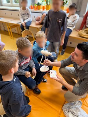 No dia 14 de novembro, o professor Willian, da Universidade Federal de Pelotas (UFPel), realizou uma visita a uma escola de ensino fundamental na região de Ruda Śląska, localizada na Silésia, Polônia. A atividade integrou as ações previstas em seu estágio de pós-doutorado e teve como foco aproximar estudantes e docentes de temas atuais da ciência, com destaque para energias renováveis e transição energética.