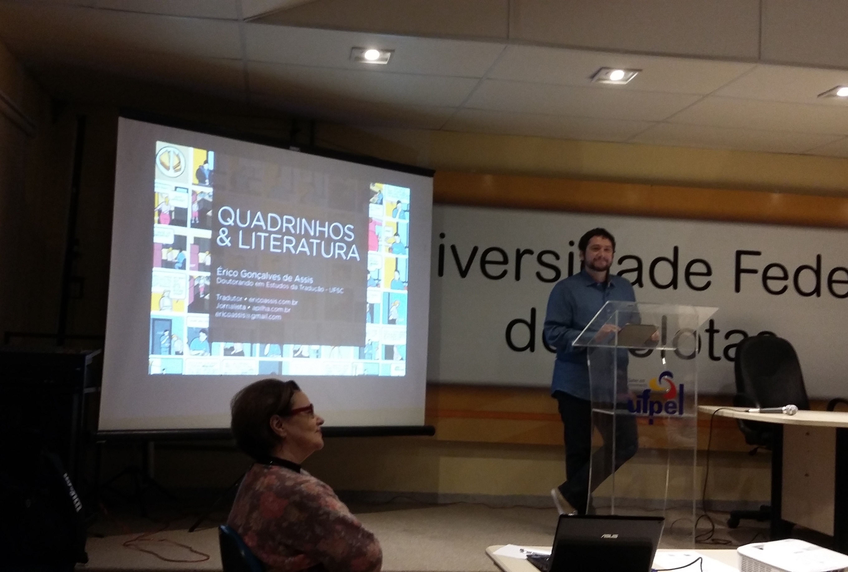 No dia 02/06, o PPG Letras recebeu o jornalista/tradutor Érico de Assis, para a conferência “Quadrinhos e Literatura”. O evento, que contou com a participação de ouvintes de diferentes cursos da UFPEL, bem como de docentes, foi coordenado pelas professoras Juliana Steil e Beatriz Viégas-Faria, que atuam na área de Literatura Comparada do Curso.