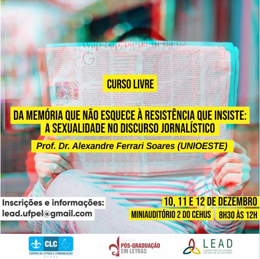 PPGL promove curso livre com o Prof. Alexandre Ferrari Soares Compartilhe isso:Compartilhar Clique para compartilhar no X(abre em nova janela) 18+ Clique para compartilhar no Facebook(abre em nova janela) Facebook Clique para compartilhar no WhatsApp(abre em nova janela) WhatsApp Publicado em 29/11/2019, na categoria Sem categoria.