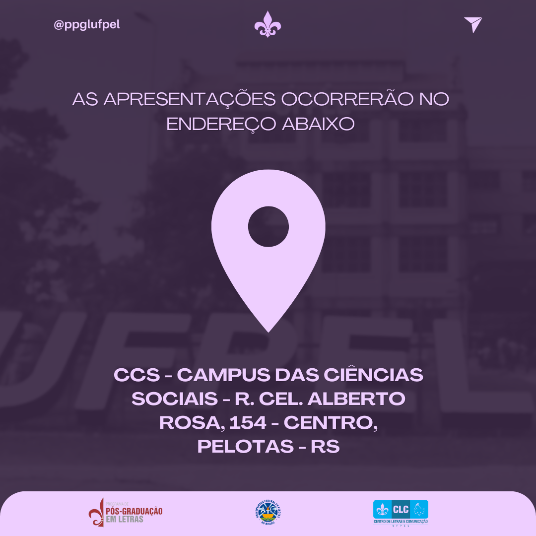Você é nosso convidado especial, estamos te esperando no Campus das Ciências Sociais (CCS), na rua Cel. Alberto Rosa, n° 154 – Centro, Pelotas-RS.