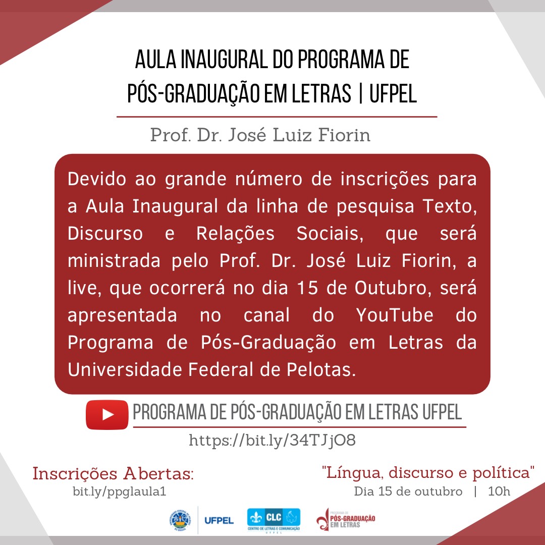 O Programa de Pós-Graduação em Letras da Universidade Federal de Pelotas, em conformidade com a Resolução PPGL 02/2019, torna público o resultado final do EDITAL 07/2020.