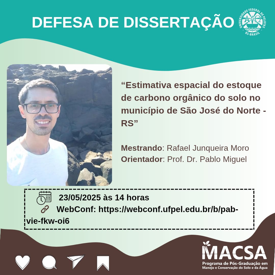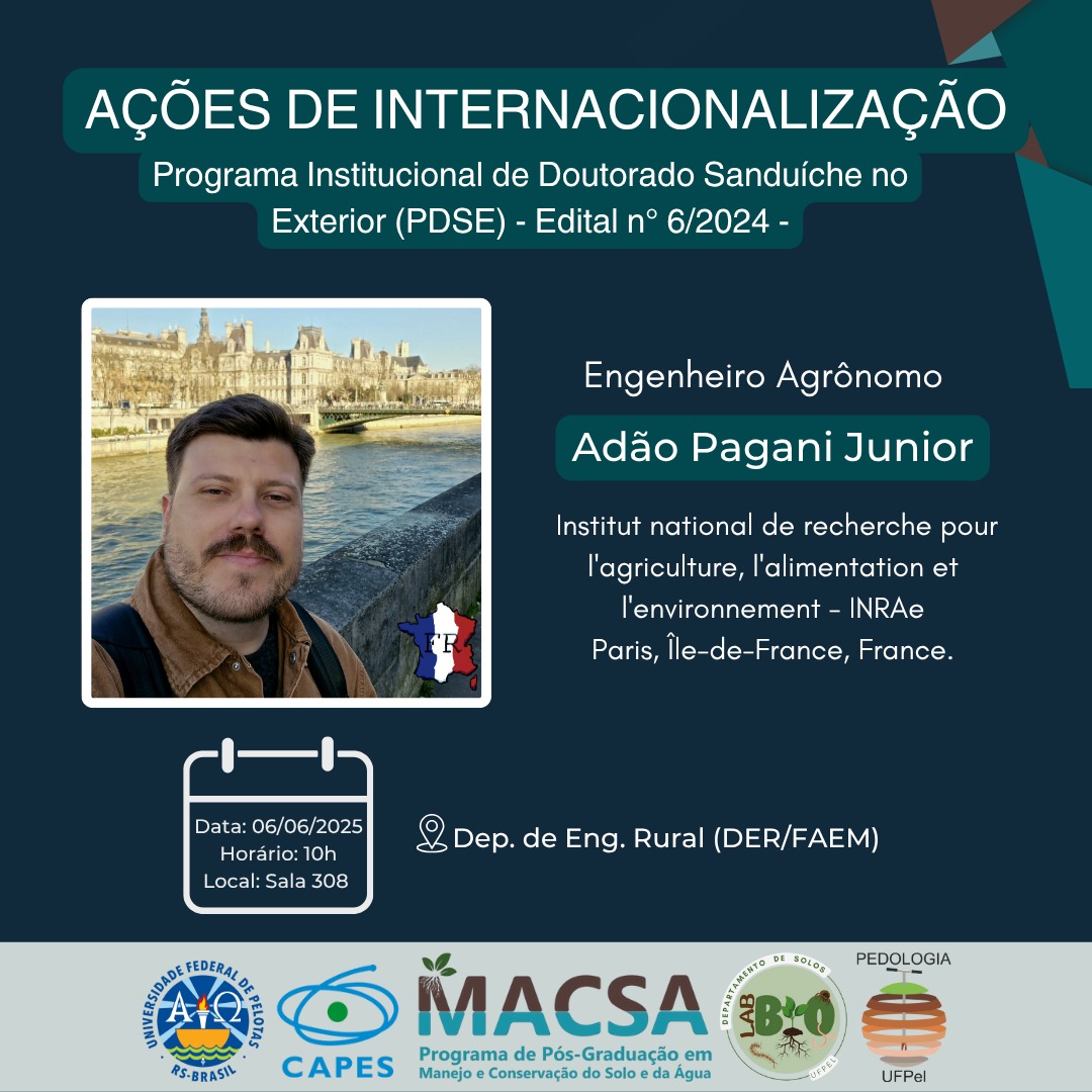 O Programa de Pós-Graduação em Manejo e Conservação do Solo e da Água (PPG MACSA), níveis de Mestrado Acadêmico e Doutorado, da Faculdade de Agronomia Eliseu Maciel, foi recomendado com Nota 4 na última reunião do Conselho Técnico-Científico da Educação Superior (CTC-ES) da CAPES.