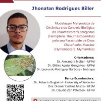 Convite para Exame de Defesa de Mestrado de JHONATAN RODRIGUES BILLER intitulado “Modelagem Matemática da Dinâmica e do Controle Biológico do Thaumastocoris peregrinus (Hemiptera: Thaumastocoridae) pelo seu Parasitoide de Ovos Cleruchoides Noackae (Hymenoptera: Mymaridae)“, sob orientação de Alexandre Molter. Data: 24/02/2026 Hora: 14h30 Sala: 109 do prédio 16. Link para webconf: https://webconf.ufpel.edu.br/b/ale-ndj-mau