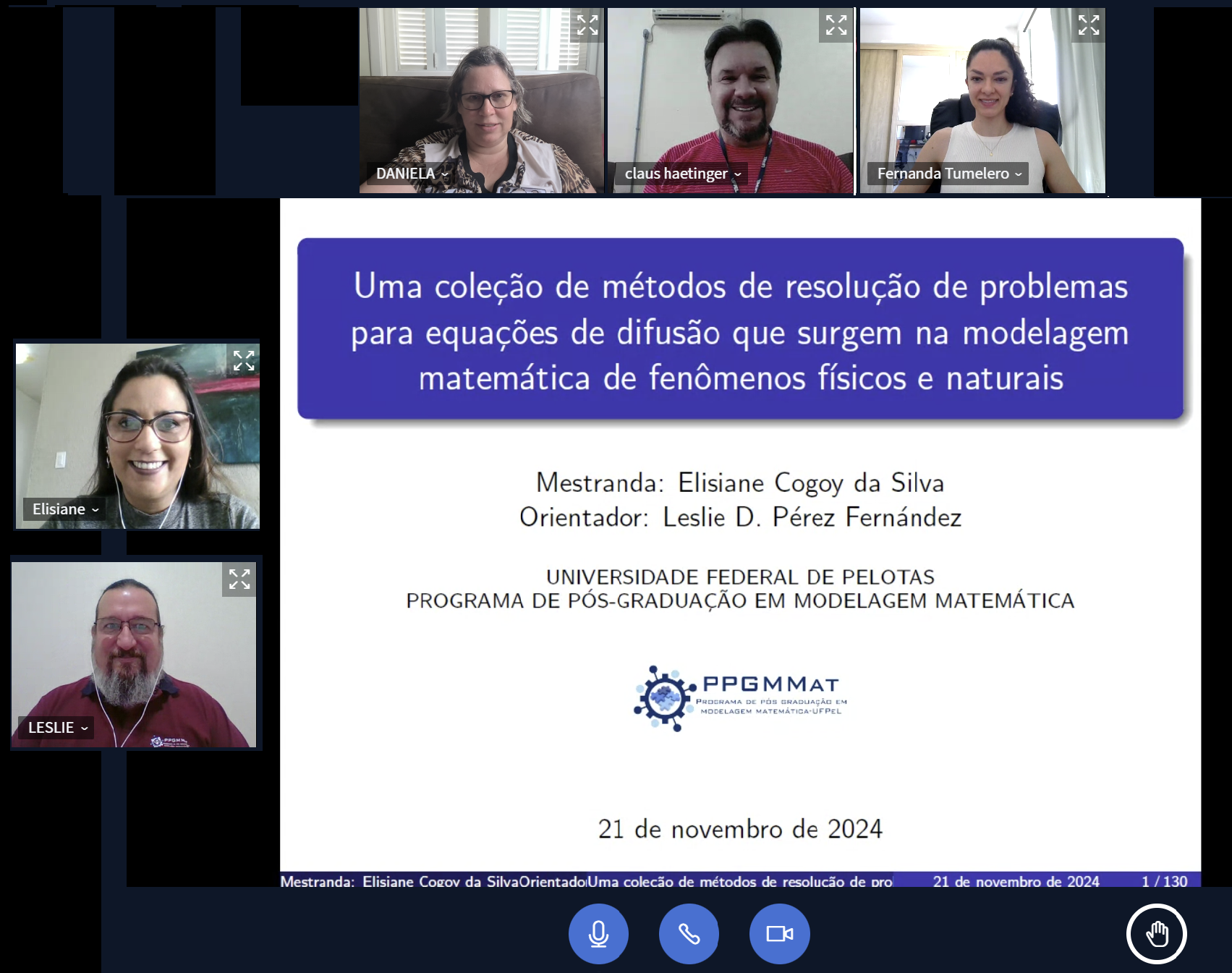 6. ELISIANE COGOY DA SILVA, 21/11/2024, orientador: Leslie Darien Pérez Fernández