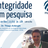 É com muita alegria que o Programa de Pós-Graduação em Odontologia da UFPel convida para a Aula inaugural de 2022/1, com o tema “Integridade em Pesquisa”. Nosso convidado é o Prof. Dr. Thiago Ardenghi, Professor Associado da Faculdade de Odontologia da UFSM. A atividade será realizada on-line no dia 21/03 às 18h. Esperamos vocês Neste Link
