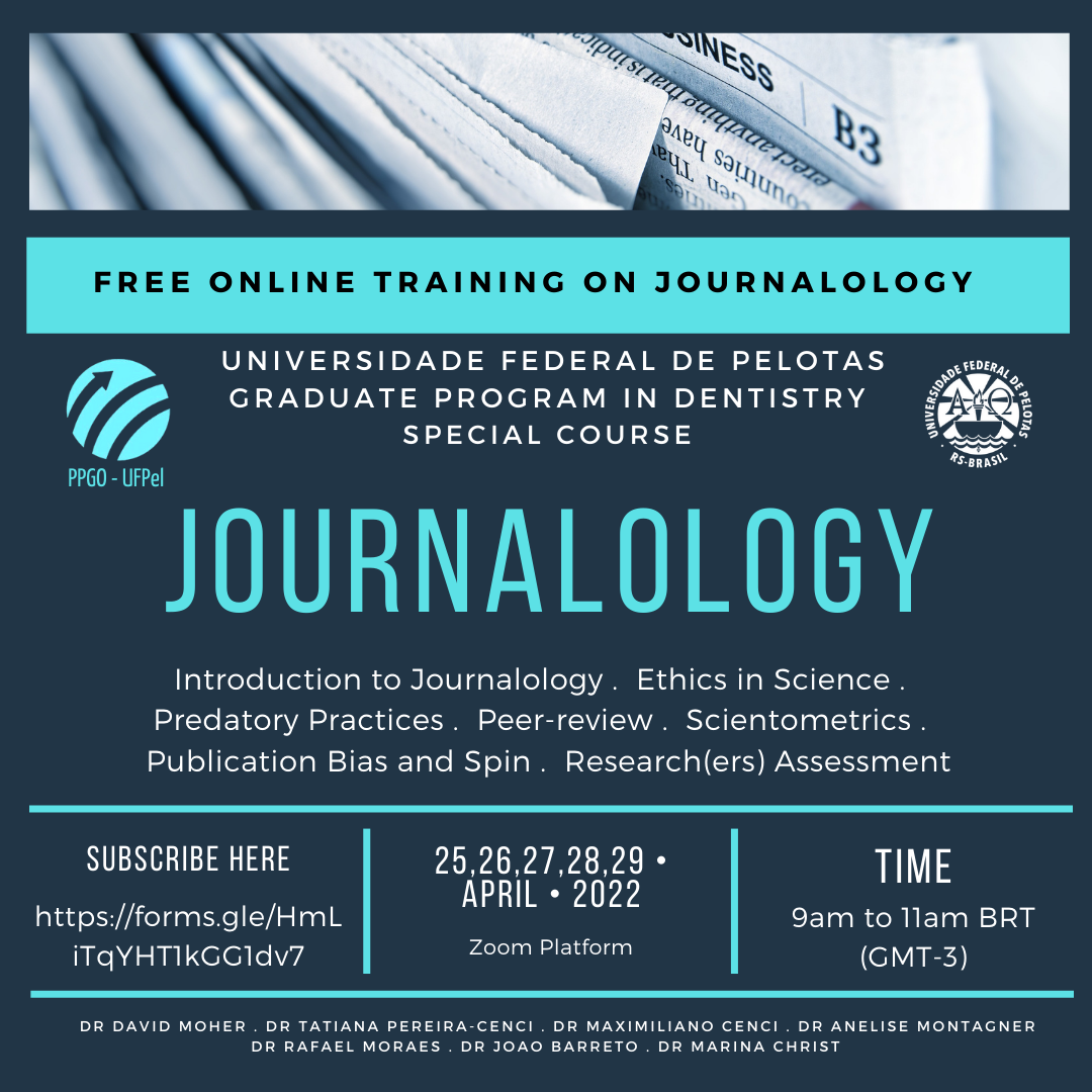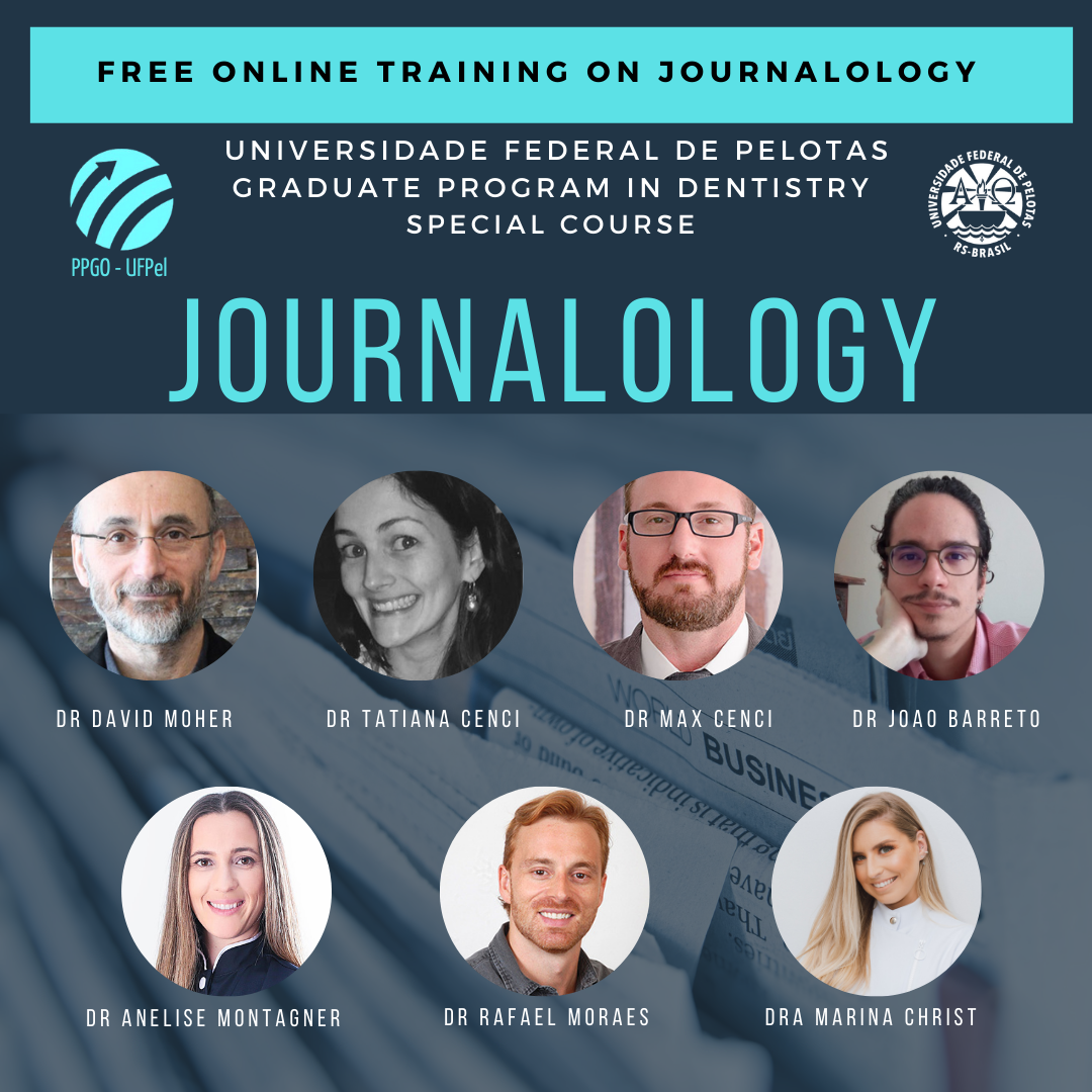 🆕 O Programa de Pós-Graduação em Odontologia da Universidade Federal de Pelotas está oferecendo um curso de capacitação online gratuito (via Zoom) sobre Jornalologia.