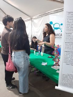 Cada grupo apresentou experimentos interativos, demonstrações e materiais didáticos voltados à popularização da ciência, despertando o interesse dos visitantes pelas diferentes vertentes da Química e pelas oportunidades de formação científica oferecidas na UFPel.
