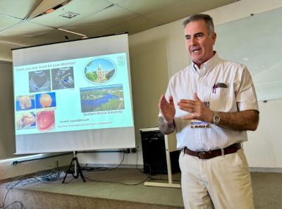 O evento contou com a colaboração do Dr. Eduardo Gastal, da Southern Illinois University Carbondale, pesquisador de destaque na área de reprodução, que ministrou duas sessões teóricas focadas em temas avançados da fisiologia equina, fortalecendo as atividades de internacionalização da pós-graduação, e do Médico Veterinário Felipe Hartwig, proprietário da Hartwig Fertilidade Equina, que ficou responsável pela palestra “Desafios na carreira de médico veterinário e na gestão de uma central de reprodução”. Esta interação com a iniciativa privada é crucial, pois permitiu que as atividades práticas do curso (como as avaliações de Mapeamento ultrassonográfico, Ovulação & Doppler e Fluxo sanguíneo do folículo pré-ovulatório) fossem realizadas na sede da Hartwig Fertilidade Equina, em Pelotas/RS, complementando a parte teórica realizada no Auditório Élio Paulo Zonta, no Campus Anglo da UFPel.