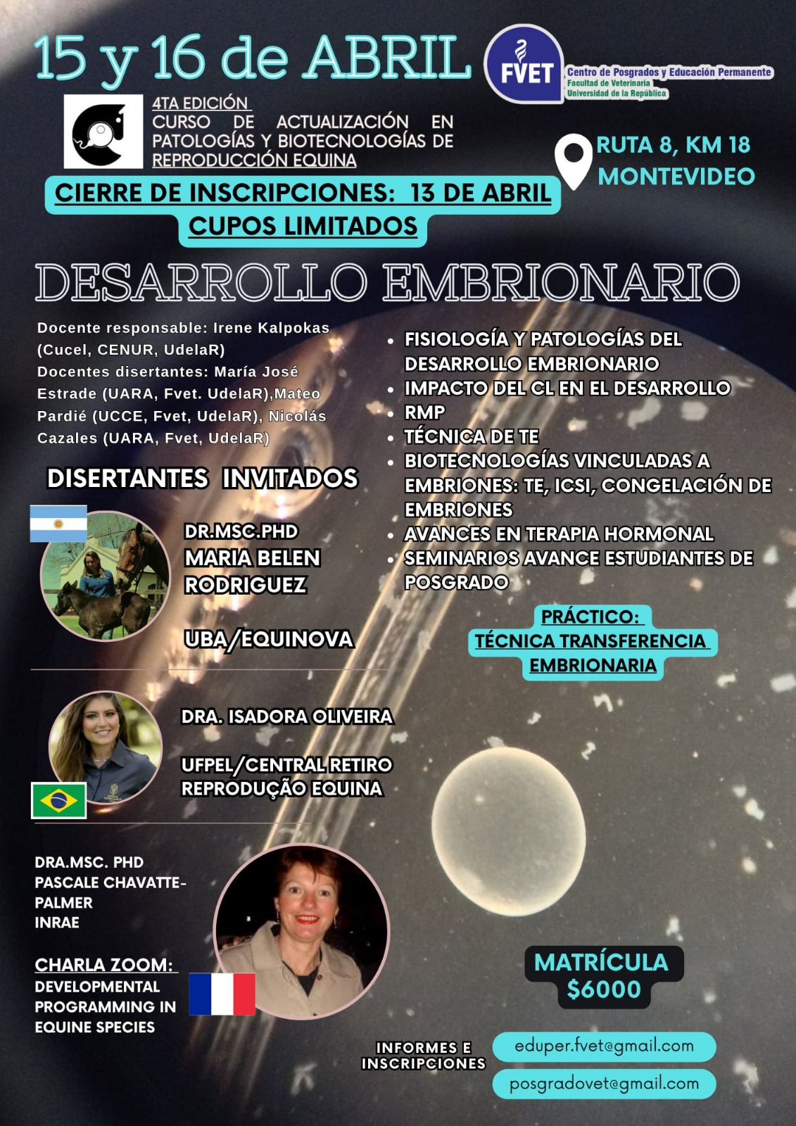 Discente do doutorado do PPGV participará, nos dias 15 e 16 de abril de 2026, como palestrante na “4ta Edición do Curso de Actualización en Patologías y Biotecnologías de Reproducción Equina”, na UDELAR – Uruguai.