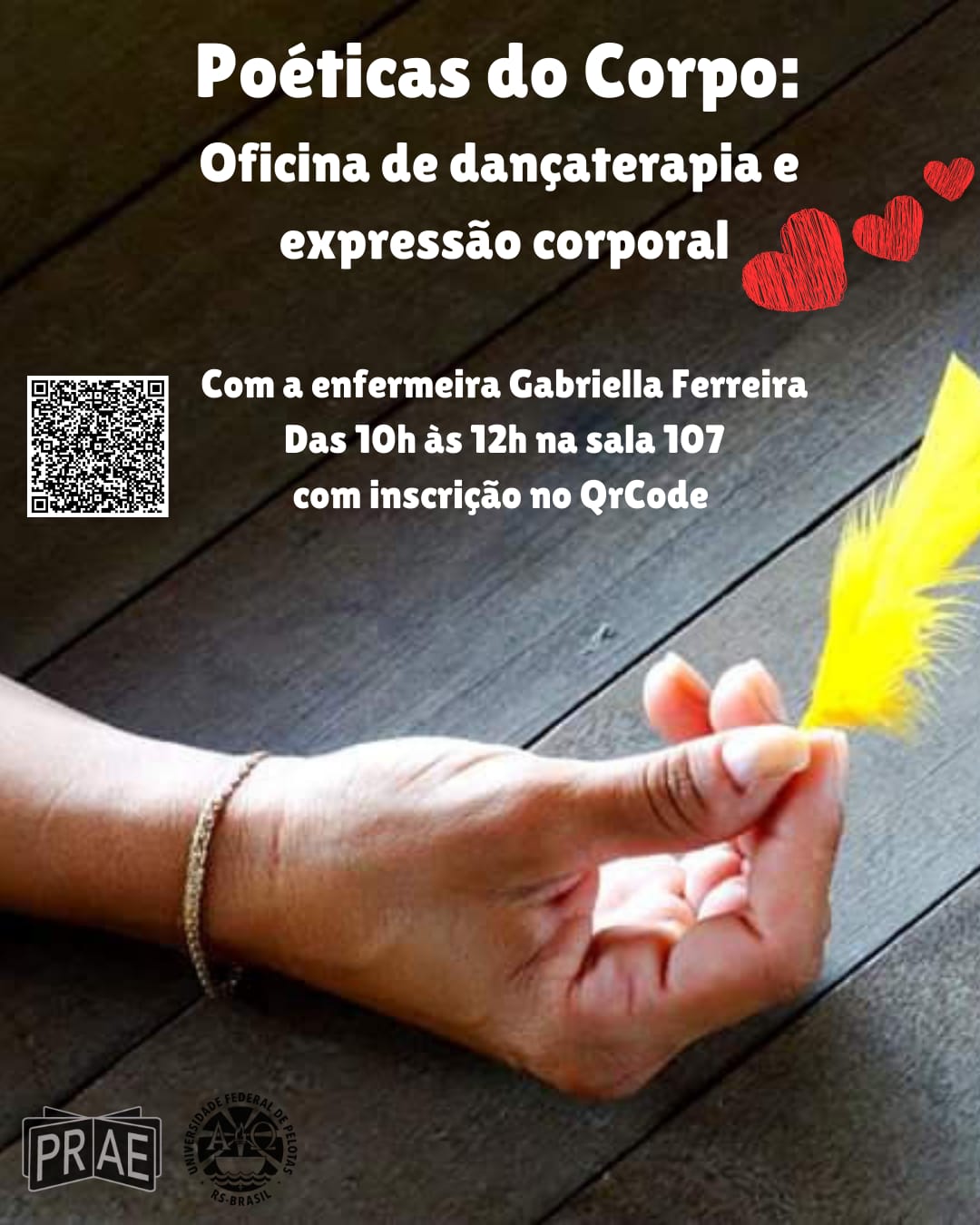 Oficina de Dança “Poéticas do Corpo: oficina de dançaterapia e expressão corporal” Com a Enf. Gabriella Ferreira |