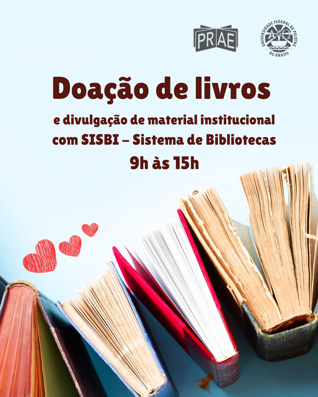 Doação de livros e divulgação de material institucional, vídeos, folders do Sistema de Bibliotecas da UFPel |