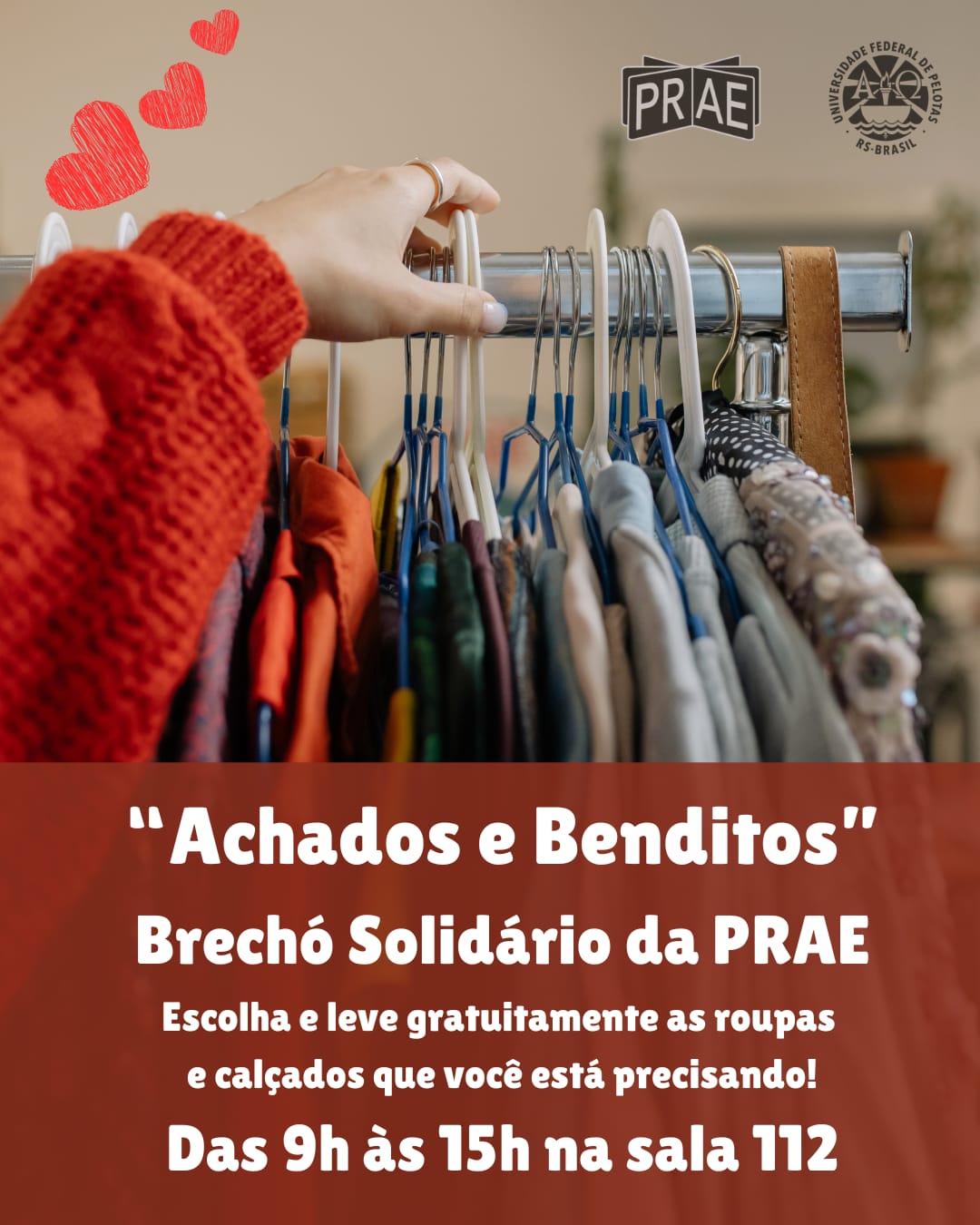 Brechó solidário “Achados e Benditos” Escolha e leve gratuitamente as roupas e calçados que estiver precisando |