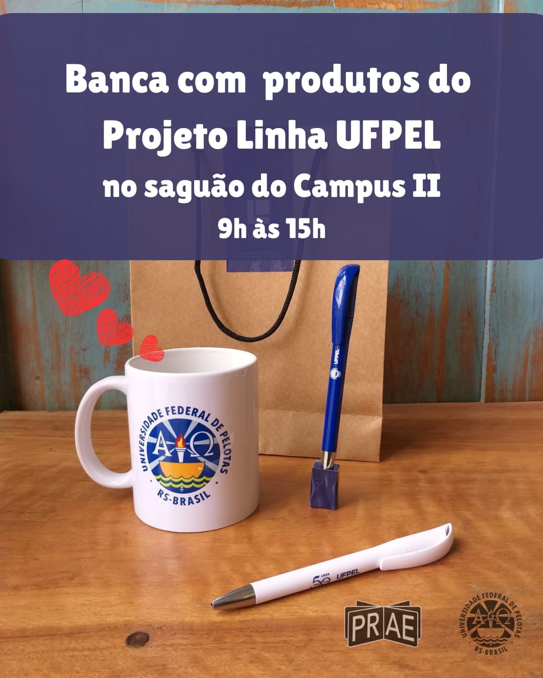 Banca com comercialização de produtos com a marca da Universidade – Projeto Linha UFPel |
