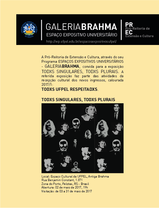 A Pró-Reitoria de Extensão e Cultura convida todos a participarem das atividades a serem realizadas na Calourada, no dia 02/05. Entre algumas destas atividades, estão a abertura de exposições e dos Espaços Expositivos Universitários. A programação completa da Calourada 2017/1 pode ser acessada aqui.