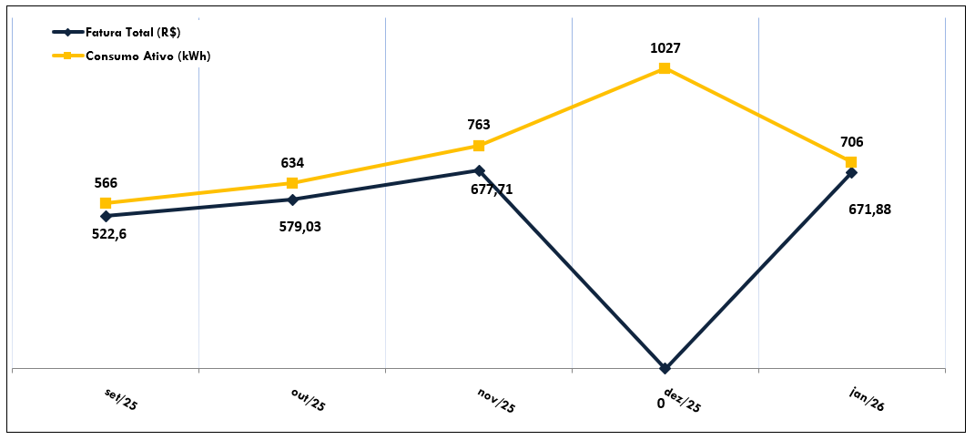 Histórico de consumo: Por se tratar de uma unidade recentemente inaugurada, ainda não há dados suficientes para a apresentação do histórico de consumo.