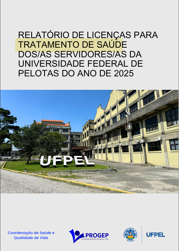 A PROGEP disponibiliza o Relatório de Licenças para Tratamento de Saúde dos/as Servidores/as da Universidade Federal de Pelotas, que é realizado anualmente pela Coordenação de Saúde e Qualidade de Vida. Confira o relatório abaixo.