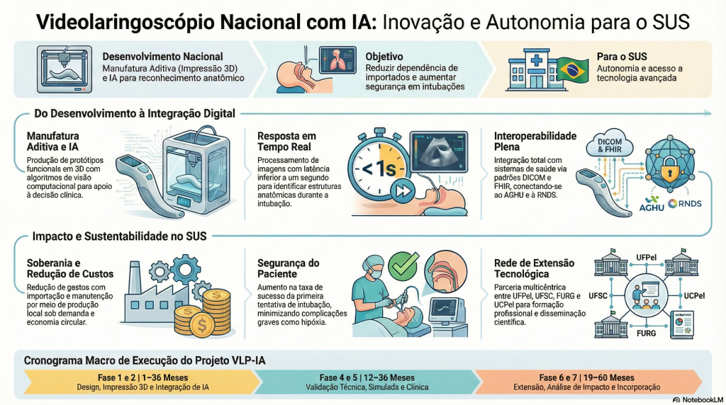 Estamos desenvolvendo um videolaringoscópio feito em impressora 3D. O objetivo é criar uma versão mais acessível e de baixo custo, para que hospitais e ambulâncias em todo o país possam ter essa tecnologia, salvando mais vidas.