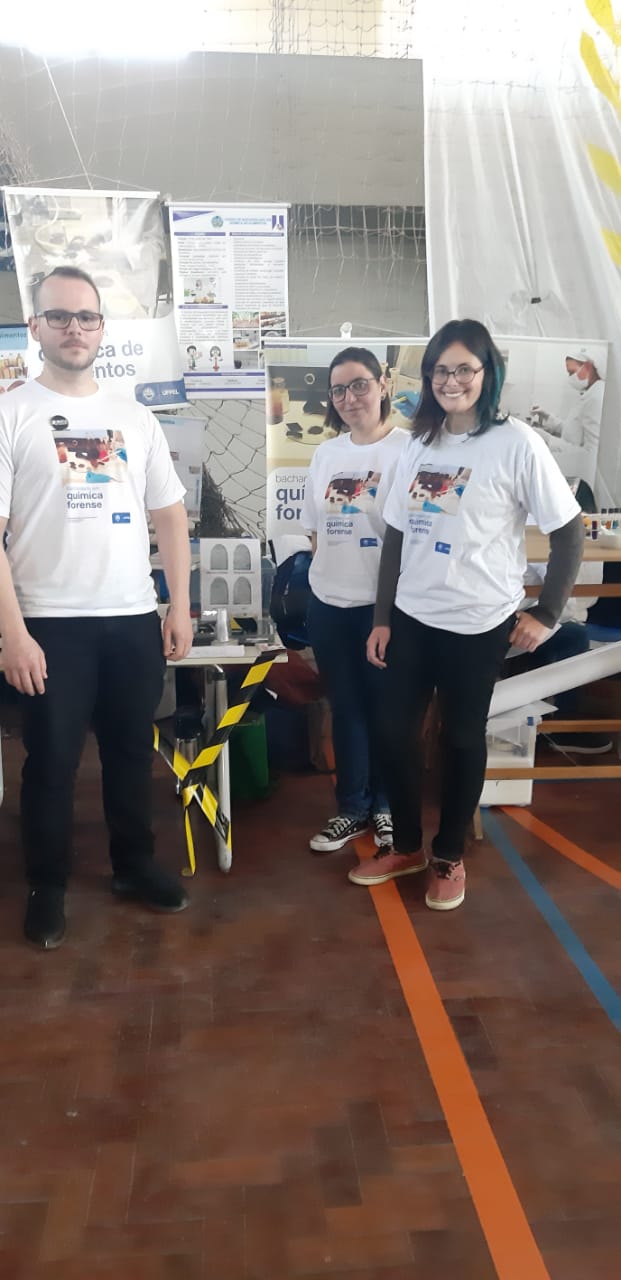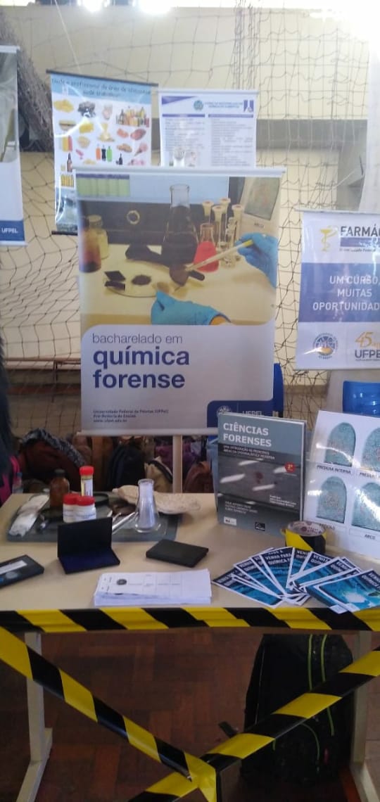 No dia 18 de setembro, os discentes do curso de Bacharelado em Química Forense, Marcely Echeverria e Angélica Martins ( representante acadêmica e representante acadêmica adjunta respectivamente), Emilly Rodrigues, kelen Goulart, Letícia Voloski e Luciano Sisconetto, juntamente com a coordenadora do curso professora Clarissa Marques Moreira dos Santos, participaram da III Mostra de Curso da UFPel. Na ocasião, os discentes apresentaram o curso para alunos de Ensino Médio de instituições de ensino públicas e privadas, em uma mostra que reuniu apresentações de variados cursos da UFPel. O evento, em sua terceira edição, foi avaliado positivamente tanto pela organização quanto pelos participantes, pois possibilitou a aproximação dos alunos de Ensino Médio e Ensino Superior, em uma importante troca de informações e experiências.