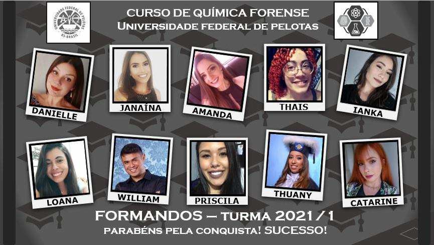 A coordenação e comissões do curso parabeniza, na figura de seus docentes, técnicos e discentes, bem como aos familiares dos novos Químicos Forenses! Nossos votos de felicidade e sucesso profissional!