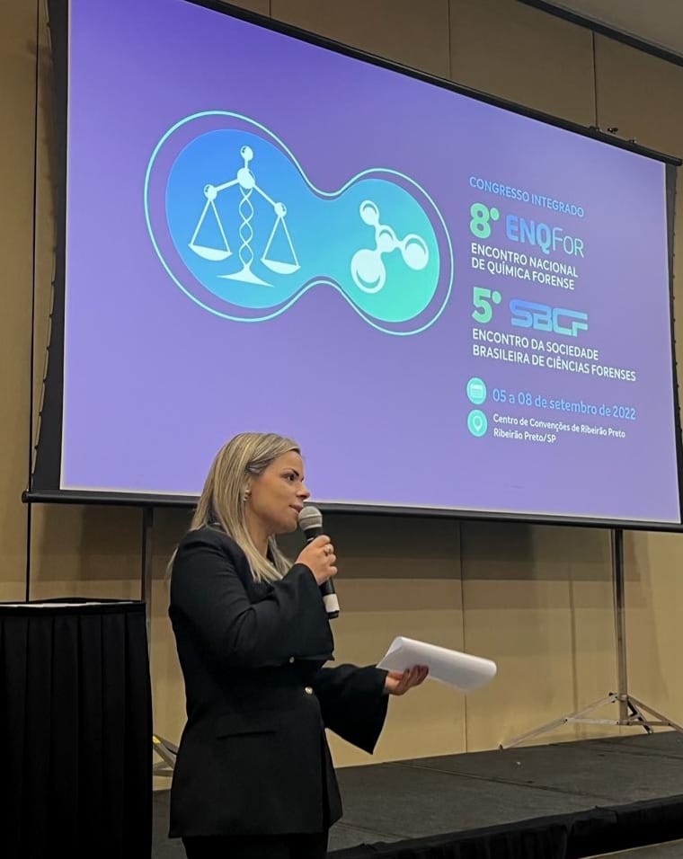 No período de 05 a 08 de setembro, a professora Clarissa M. Moreira dos Santos, coordenadora do curso de Quimica Forense da UFPel participou do 8º Encontro Nacional de Química Forense (ENQFor) e do 5º Encontro da Sociedade Brasileira de Ciências Forenses (SBCF) em Ribeirão Preto-SP como membro da comissão científica e coordenadora da sessão de Ensino em Ciências Forenses. O evento é bienal e retornou as atividades presenciais, com explanações de avanços científicos em Química e Ciências Forenses promovendo a interação entre docentes, pesquisadores e peritos criminais de renome nacional e internacional. A importância da participação da professora Clarissa neste evento de enorme relevância científica, é pela constante qualificação na área forense com temáticas que fazem parte de algumas disciplinas e de projetos de pesquisa, ensino e extensão do curso de Química Forense da UFPel, tais como: Química e Toxicologia Forense; Biologia Forense e Identificação Humana; Direito, Justiça, Ética e Ensino em Ciências Forenses aproximando a ciência da justiça. O Congresso Integrado é uma realização da Sociedade Brasileira de Ciências Forenses, em parceria com a Faculdade de Filosofia, Ciências e Letras de Ribeirão Preto (FFCLRP) da USP, apoio da Associação Nacional dos Peritos Criminais Federais (APCF) e neste ano com a representação do curso de Química Forense da UFPel pela professora Clarissa M. Moreira dos Santos na comissão científica do evento.