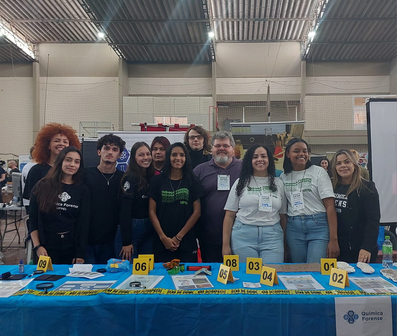 No dia 14 de maio, os integrantes do projeto Núcleo de Comunicação e Divulgação do curso de Química Forense, acompanhados por discentes do curso, participaram da Mostra de Cursos da UFPel 2025, nos turnos da manhã e da tarde.