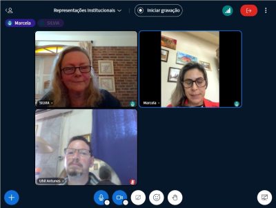 Profª Marcela Guimarães e Silva, chefe da Divisão de Democratização e Popularização da Extensão, e Uhil do Nascimento Antunes, ambos da Pró-Reitoria de Extensão e Cultura da Unipampa, colheram subsídios para a implantação da sistematização das RIs a partir da experiência da UFPel relatada pela responsável, Assist. Social Silvia Carla Bauer Barcellos, da PREC/UFPel.