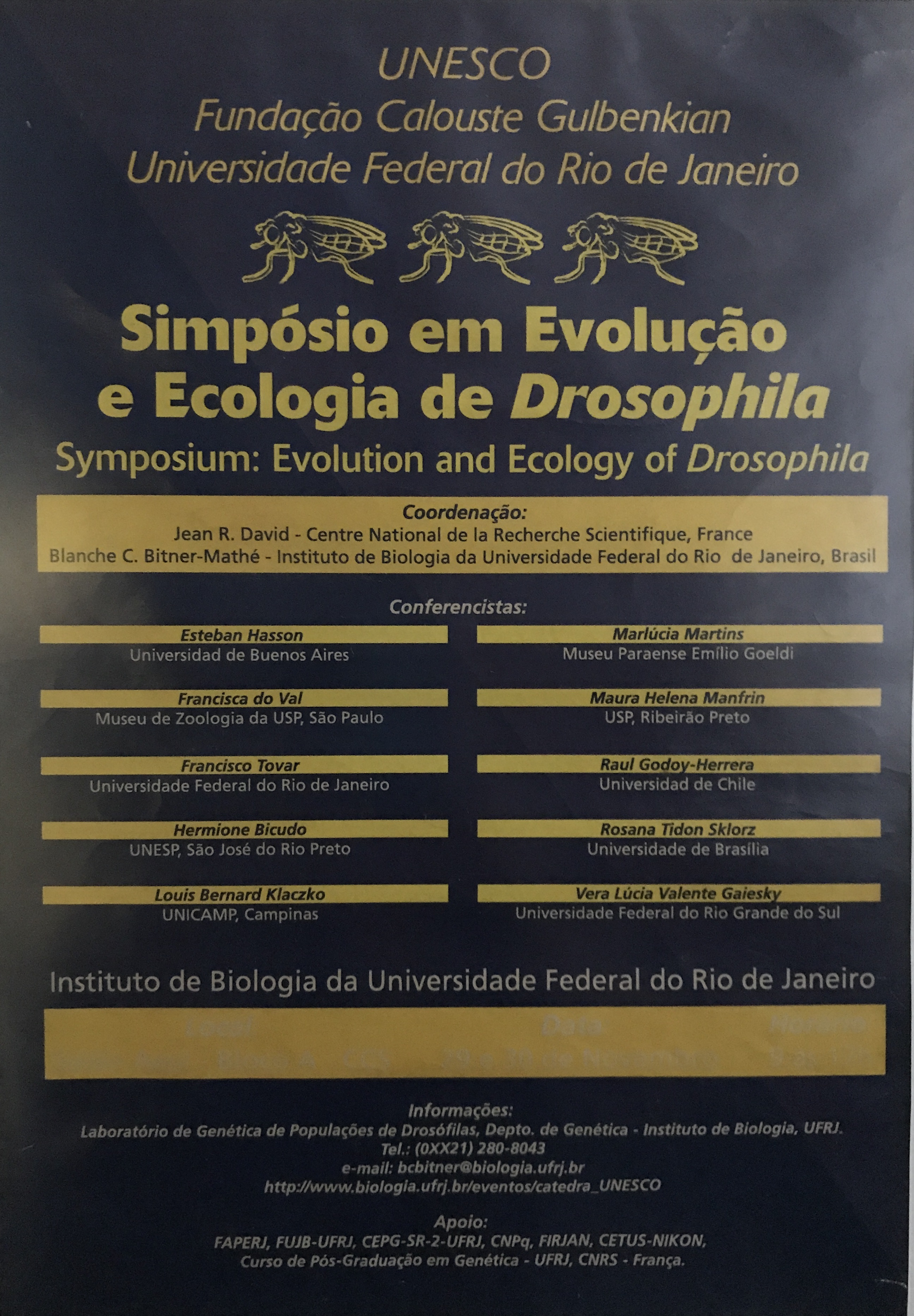 O Simpósio de Ecologia, Genética e Evolução de Drosophila vem sendo realizado bianualmente desde 1999 e já se estabeleceu como o evento mais importante para reunião e debate da comunidade drosofilista brasileira. Este evento tem contado com a presença constante de convidados e colaboradores de outros países da América do Sul, América do Norte e Europa. A primeira edição foi realizada em 1999 na cidade do Rio de Janeiro, com a coordenação da Dra. Blanche Christine Bitner-Mathé (UFRJ), a partir da sugestão e estímulo do Dr. Jean David (CNRS, França), colaborador de longa data da pesquisa realizada com Drosophila no Brasil. Desde então, os principais grupos de pesquisa em Drosophila no Brasil têm se comprometido na organização dos eventos posteriores, discriminados a seguir: