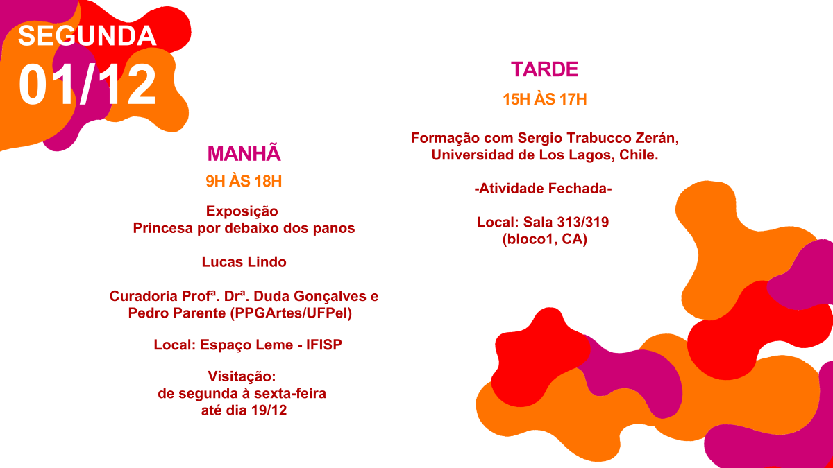 O 2º Seminário Internacional de Pesquisa em Artes (SIPA) e o 14º Seminário de Pesquisa do Mestrado em Artes Visuais são promovidos por discentes e docentes do Programa de Pós-graduação em Artes da Universidade Federal de Pelotas (UFPel), Rio Grande do Sul, Brasil. O evento é voltado a pesquisadores das poéticas, educação e teoria das artes (visuais, cênicas e musicais), vinculados ou não a instituições, assim como a discentes e egressos de Instituições de Ensino Superior (IES), nacionais e estrangeiras.