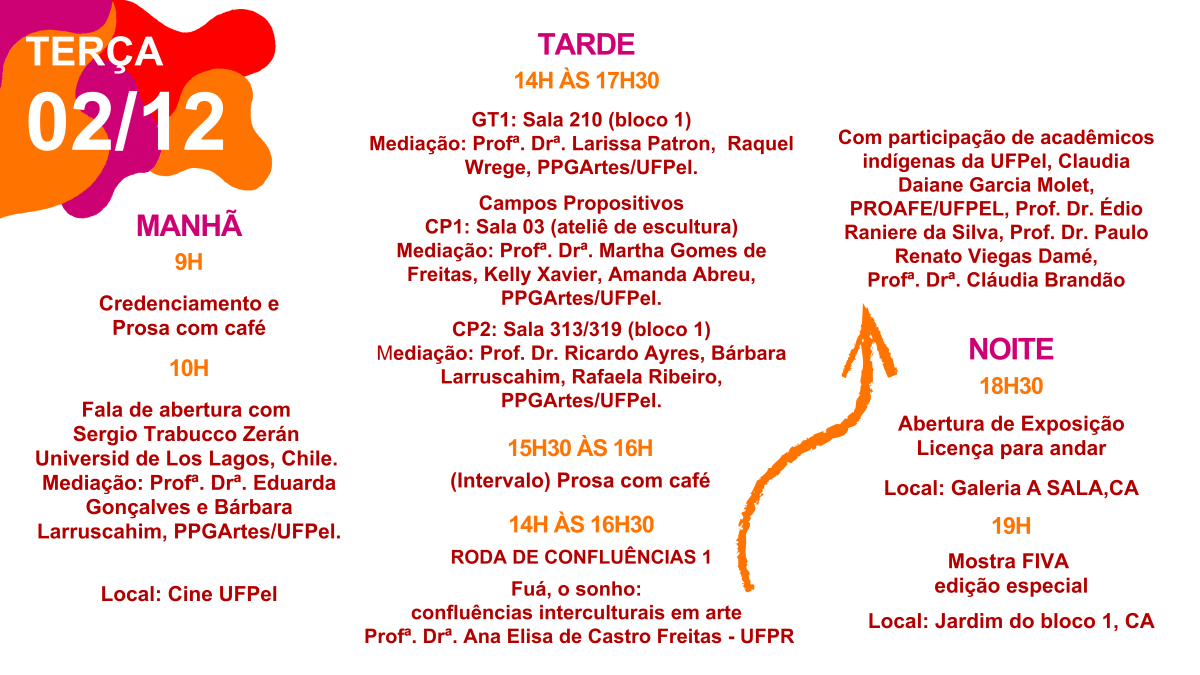 No pampa, campo é um horizonte amplo que permite ao olhar de tantos artistas percorrer planícies e prospectar novos horizontes existenciais e conceituais de criação. Como cultivo, campo também se torna espaço de jogos, integrações e dinâmicas entre corpos, tempos, territórios e objetos, onde da contemplação e da ação nascem novos sentidos. Trata-se de uma geometria sensível que conecta corpo e mundo, inspirada no cuidado e na atenção ao tempo de espera como metáfora para a germinação da pesquisa em Arte no extremo sul do Brasil. Conflui dessa experiência com a terra o interesse pelo encontro e seus frutos, assim como o interesse pelo olhar crítico ao espaço que se perde diariamente à máquina neoliberal que come a natureza. Amparados na ideia de confluência de Antônio Bispo dos Santos, o Nego Bispo, que diz que quando um rio encontra outro rio não deixa de ser ele mesmo, mas passa a ser ele e outros rios, compreendemos o valor dos encontros gerados em eventos de pesquisa como este, que abarcam e confluenciam diferentes formas de produção no grande campo das Artes.