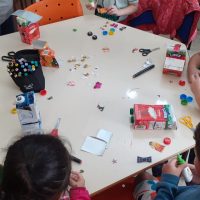 Os fantoches foram feitos com caixas de leite. A proposta integra o projeto “O que você joga fora? Resíduos como meio de educação, arte e inclusão”, promovendo a reflexão sobre reaproveitamento de materiais, consumo e sustentabilidade por meio da arte.