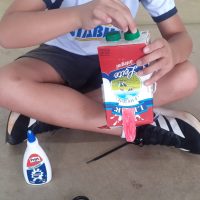 Os fantoches foram feitos com caixas de leite. A proposta integra o projeto “O que você joga fora? Resíduos como meio de educação, arte e inclusão”, promovendo a reflexão sobre reaproveitamento de materiais, consumo e sustentabilidade por meio da arte.