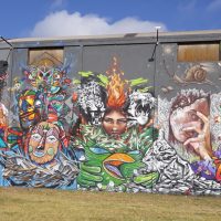 Fachada lateral do Núcleo de Transportes recebeu pintura e iluminação para realização de evento de grafitagem.