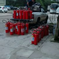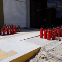 Servidores da Superintendência de Infraestrutura acompanham empresa terceirizada na substituição de extintores realizadas nas dependências do complexo ANGLO / Campi Pelotas.