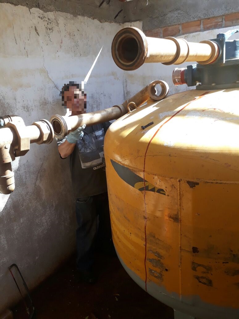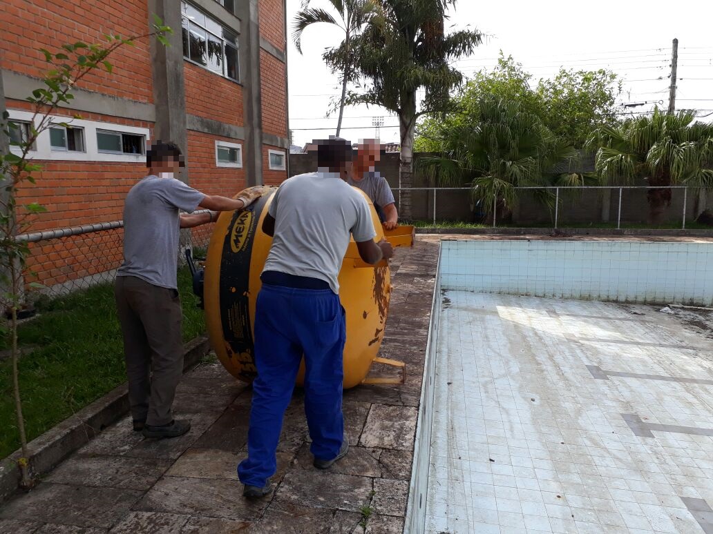 Ação de substituição do filtro da piscina na antiga AABB foi desenvolvida pela equipe de Manutenção dos Campi Pelotas.