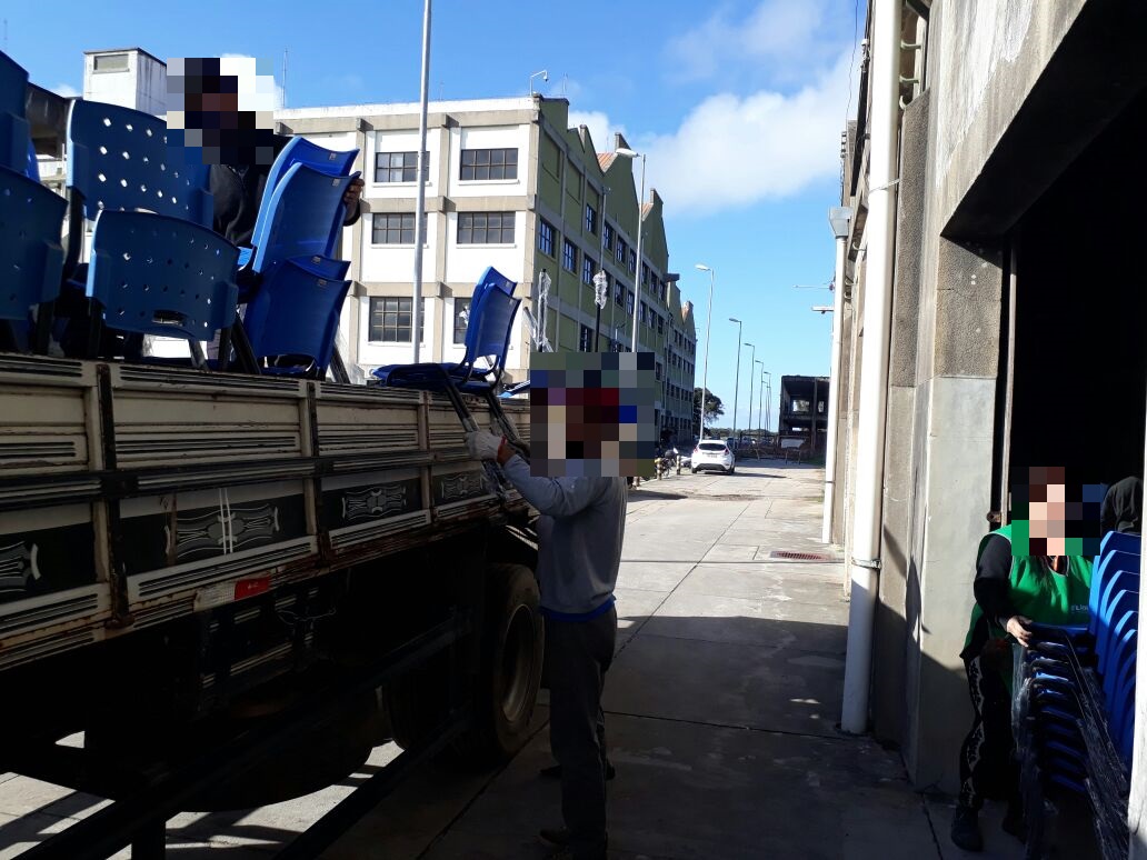 Espaço do ANGLO ocupado pelo almoxarifado da Universidade é transferido para novo local. A finalidade é liberação da edificação para inicio das intervenções de reforma para instalação do novo Restaurante Universitário. A ação foi desenvolvida pela equipe da Seção de Manutenção dos Campi Pelotas – SMPel/SUINFRA.