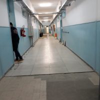 Corredor do Departamento de Ciência e Tecnologia Agroindustrial recebe ações de execução de piso em porcelanato.